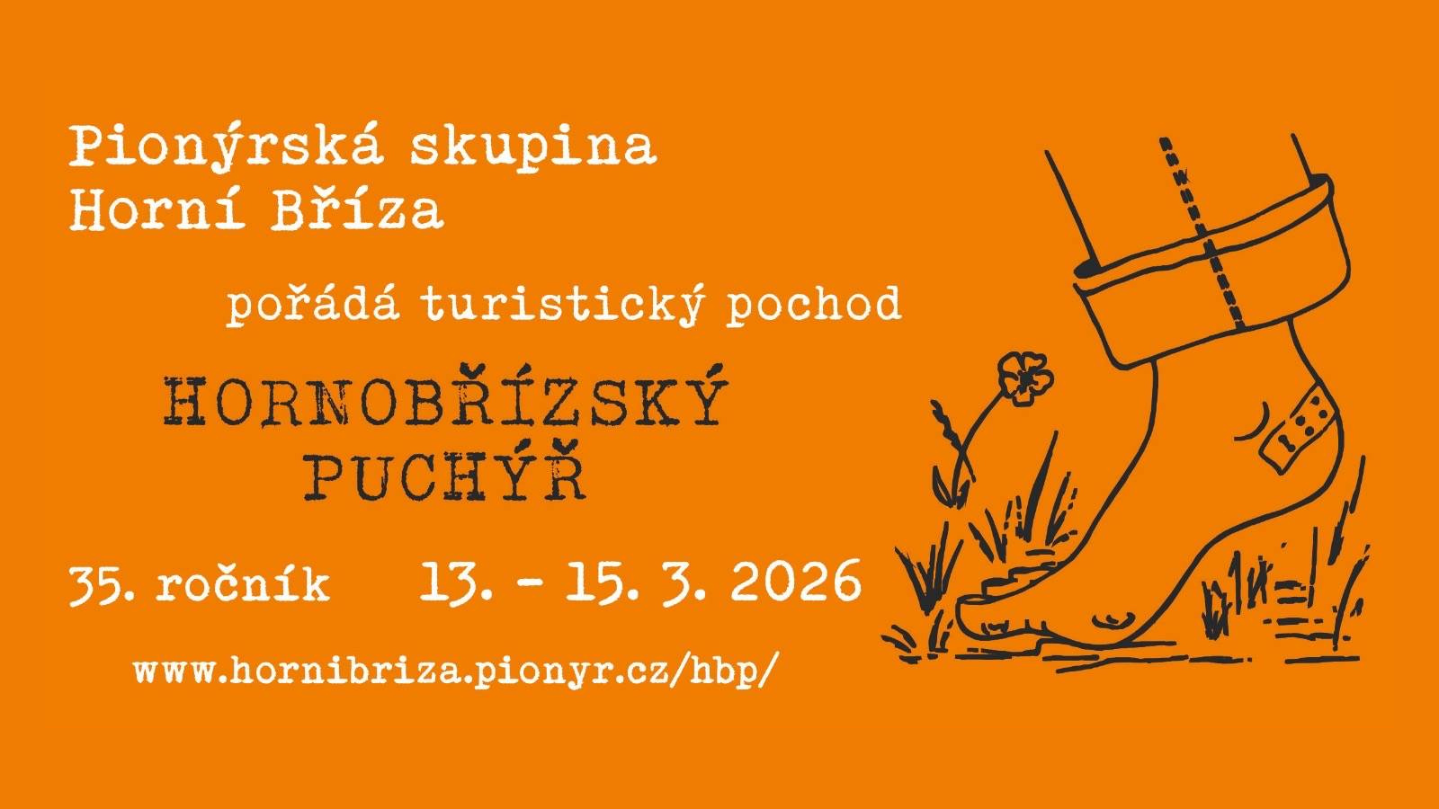 Provedené změny na této stránce nejsou uloženy Sledovat akciDetail akceNázev: Hornobřízský puchýřPořadatel: Pionýrská skupina Horní BřízaDatum: 13. 3. 15:00 - 15. 3. 2026 11:00Lokalita: Masarykova ZŠ Horní BřízaKraj: PlzeňskýPopis: Pionýrská skupina Horní Bříza ve spolupráci s KČT TJ TATRTAN TŘEMOŠNÁ pořádá 35. ročník turistického pochodu Hornobřízský puchýr - Memoriál Jardy Nováka. Pro účastníky jsou připraveny každý den trasy (pátek 10 km, sobota 6, 15, 23, 31, 50 km, neděle 7, 15, 20 km). Podrobnější informace v plakátku v přílohách. Těšíme se na Vás. Doprava: VlastníUbytování: Masarykova základní škola – od pátku 13. 3. od 15,00 h do neděle 15. 3. 2026 do 9,00 h – tělocvična – ve vlastním spacím pytli a karimatce 50,- Kč/noc. Není nutná rezervace.Strava: V místě startu a cíle bude zajištěn bufet, drobné občerstvení na trasách pochodu. Jinak je stravování z vlastních zásob nebo v některých restauracích v Horní Bříze.Cena: Pro veřejnost: 50 Pro členy: 50Lokalizace: CelorepublikováTyp akce: AkceKontaktní informaceKontaktní osoba: Jiří CaltaE-mail: pionyr.hb@gmail.comTelefon: 605476246Akci vložil/a: Václav SteidlWeb akce: https://hornibriza.pionyr.cz/hbp/Soubory:Pozvánka 2026Leták 2026