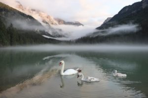 • Ty labutě jsou na fotce naprosto klíčové. Bez nich by šlo u průměrnou fotografii. S nimi je fotka na špičkové úrovni. Líbí se mi kompozice i atmosféra způsobená mlhou a mraky. Navíc je scéna vyfocená tak, jako by autor stál uprostřed jezera. Skvělý záběr.
