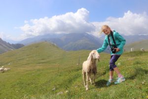 • Těžko říct, zda byla zvědavější slečna, nebo ovečka.