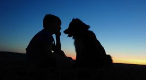 • Skvěle zachycený dvojportrét se psem se zářivým úsměvem.