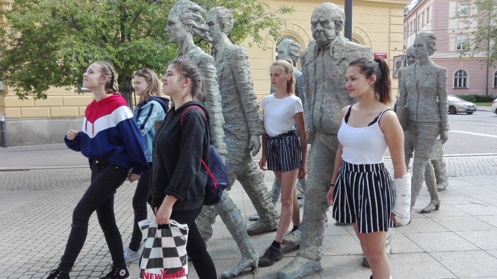 • Kreativní fotografie, kompozičně bych doporučil lehký ořez shora a zleva. Ideální by bylo, kdyby se zapojila i děvčata vlevo vzadu. Tím, že stojí zády, strhávají pozornost na sebe. Pokud by naopak koukali směrem k hlavnímu motivu, podtrhla by hlavní motiv 🙂 Obecně by bylo dokonalé, pokud by všichni koukali na toho, komu kryjí záda.
