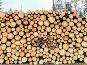 Kreativně podaná jednoduchá fotografie, s nevšedním nápadem. Propojující přírodu a lidské vynálezy. Klády poukazují na původ kola.