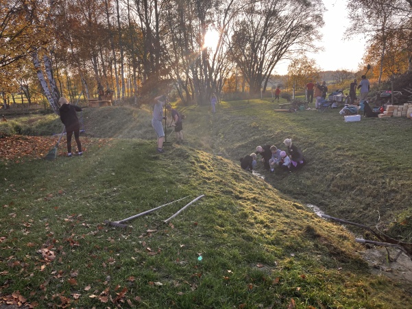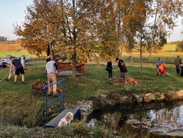 Každá skupina měla různý úkol. Někdo sekal, další skupina hrabala a odvážela biomasu, další skupina sázela stromky (5 osik, 5 dubů, 3 javory a 3 vrby). Další skupina pracovala na ohništi - úklid, příprava dříví a rozdělání a udržení ohně. Další připravovali stanoviště - střelba ze vzduchovek na biatlonové terče (odměna pro děti i některé dospělé) a poslední skupina vyráběla lavičky a stavěla "pec" ze šamotek z akumulačních kamen, které se vyřadily při výměně otopného systému v MŠ a OÚ Neurazy. Při závěrečném posezení u ohně spojené s občerstvením se vše zhodnotilo, poděkovalo pomocníkům, protože se udělal obrovský kus práce a bývalá starostka Neuraz a zároveň učitelka biologie se zaměřením na enviromnetální výchovu, vysvětlila všem přítomným důležitost zadržování vody v krajině a co jsme pro to udělali - sázení a starání se o rybník Rousovák a co se ještě může udělat. Dalším tématem byly potravní vztahy v rybníku a okolí. Dále povídání o významu několikaleté hromady větví, která se stále navršuje - broukoviště a nutnosti zachování přirozených křovisek v okolí rybníka - úkryty zvěře. Dále důležitost recyklace - šamotky na výrobu pece a opravená cesta k rybníku z recyklátu - šetření neobnovitelných zdrojů a další nápady a zkušenosti dětí nejen s tématem třídění.