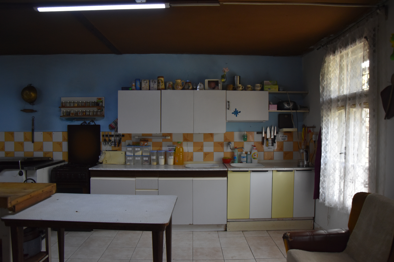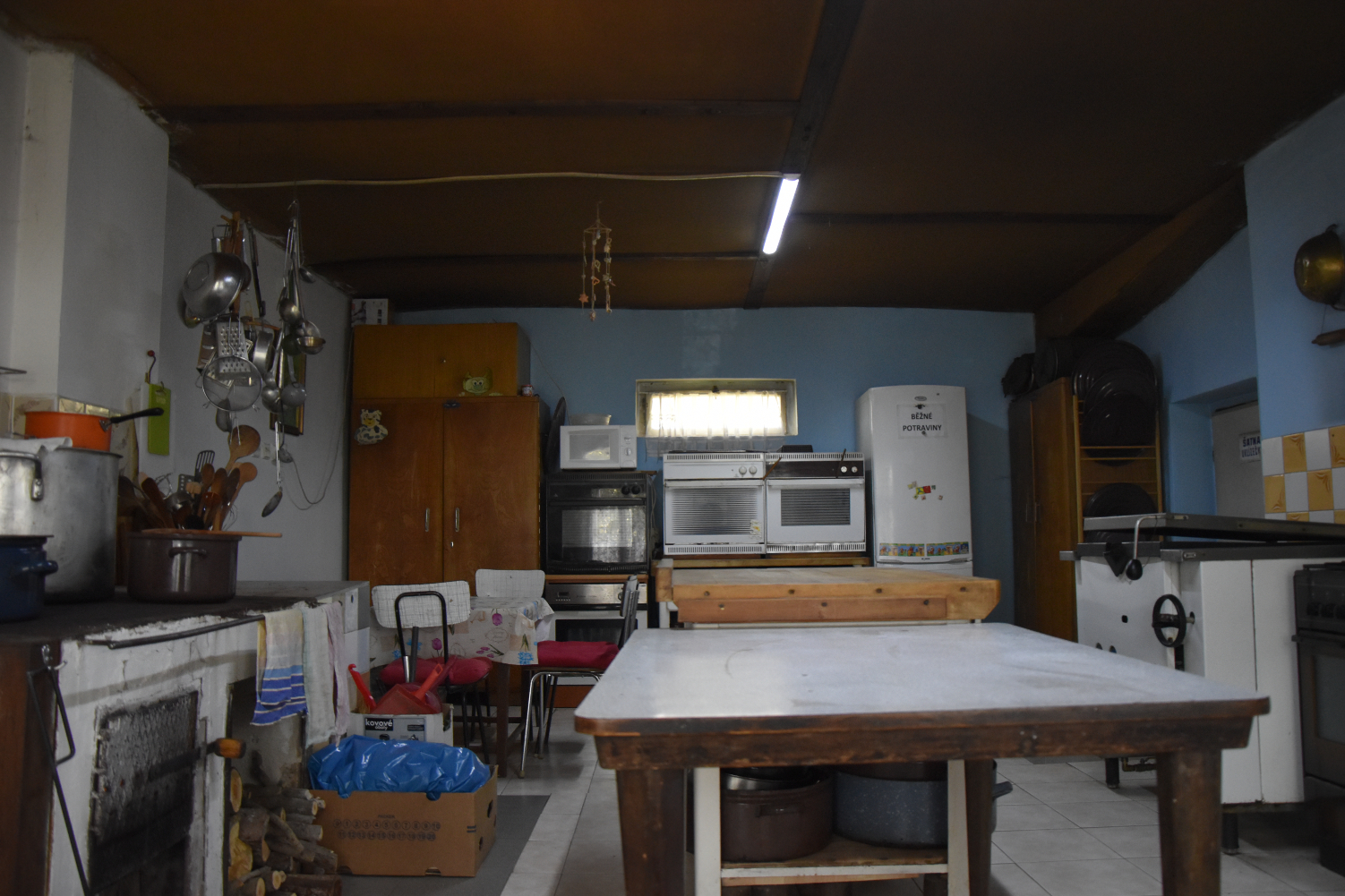 Kuchyňka: Kuchyň vybavená pro 60 osob. Součástí vybavení je plynový sporák, dvě horkovzdušné trouby, mikrovlnka, konvektomat, kamna na pevná paliva, lednice, nádobí (talíře, příbory, hrníčky, tácy, vše potřebné pro přípravu jídla).