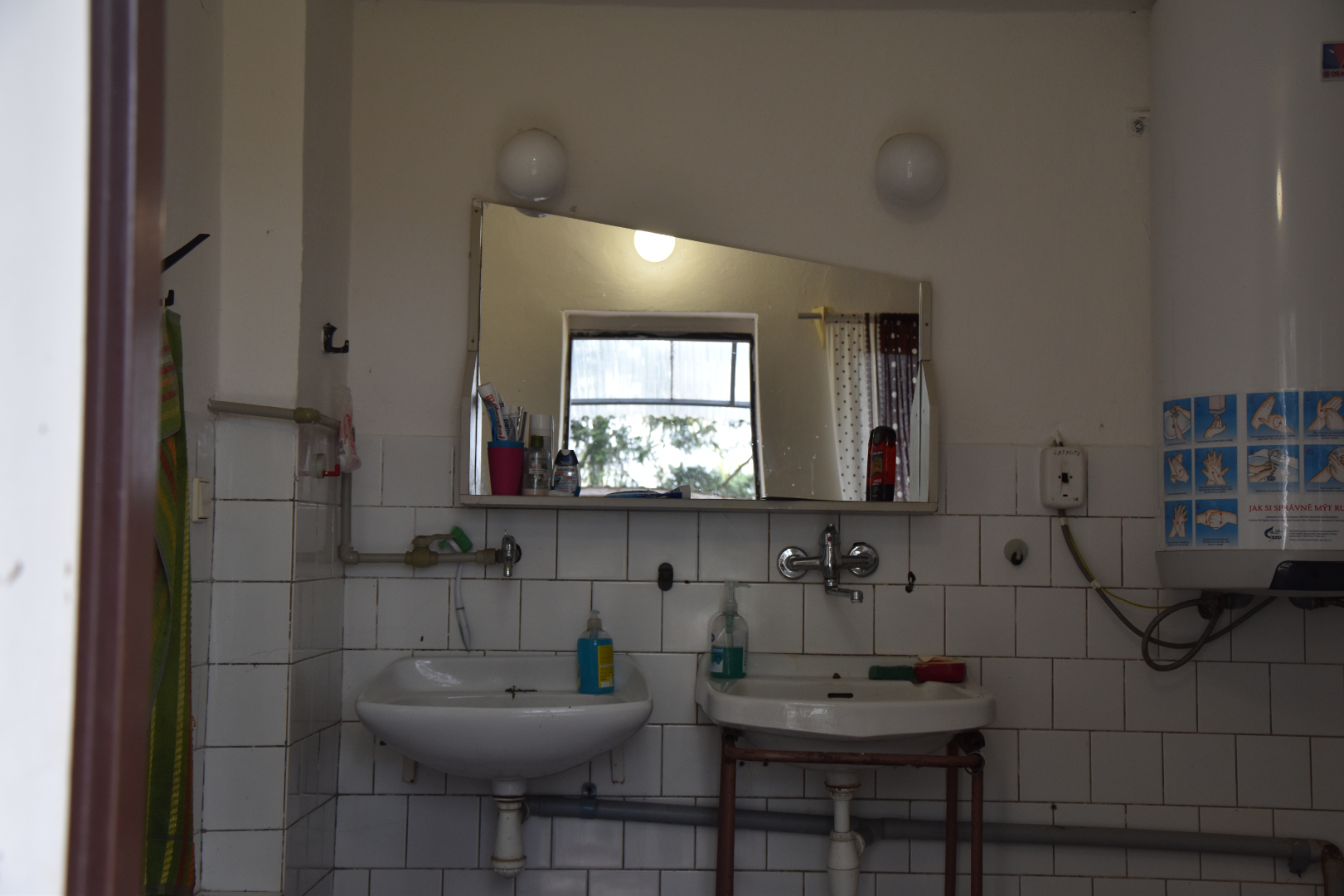 V koupelně jsou k dispozici dvě umyvadla, sprcha vyhřívaná bojlerem a pračka.