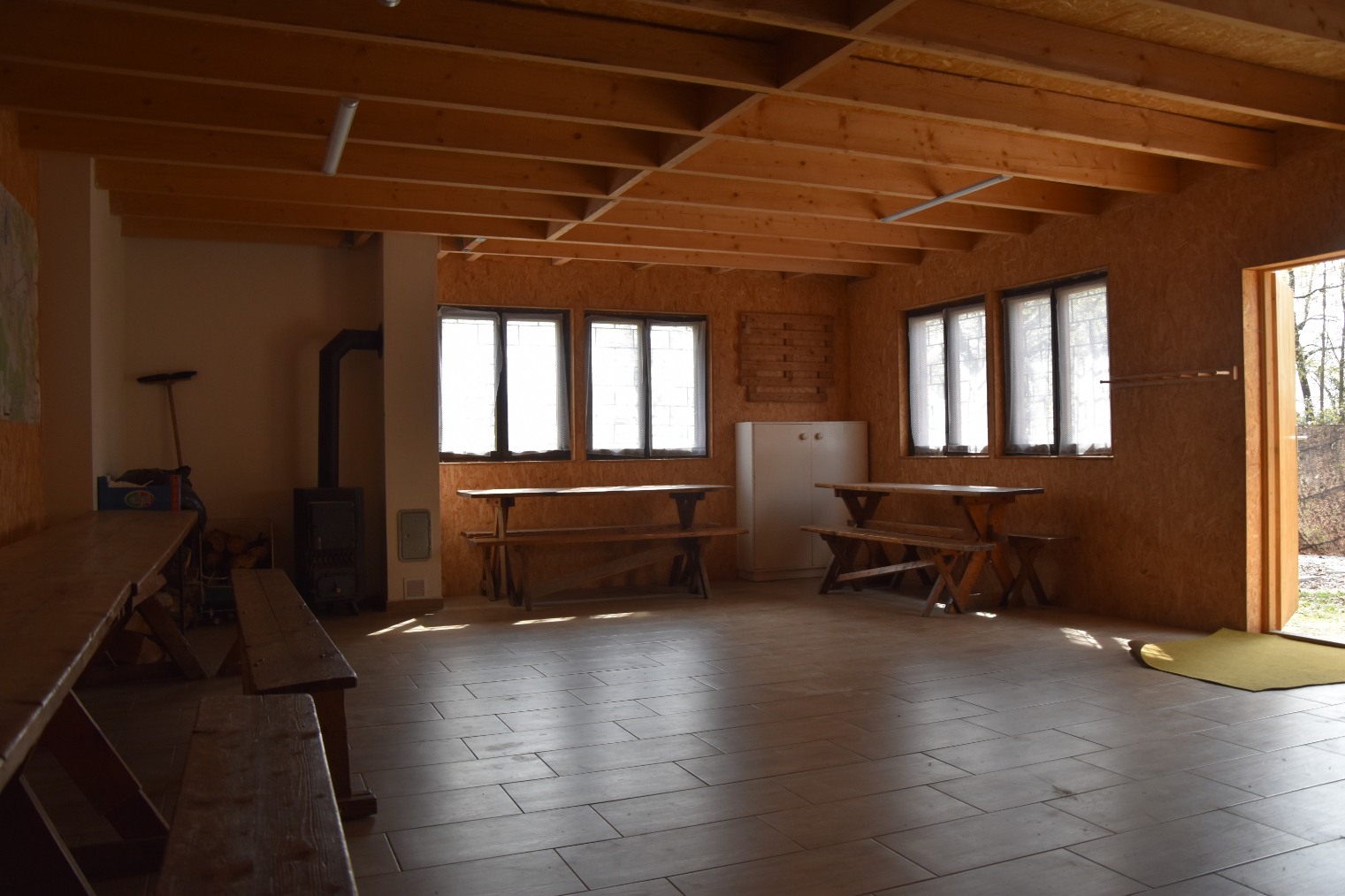 V jídelně se nachází 5 stolů s lavicemi a dostatek prostoru pro aktivity uvnitř v budově pro větší skupinu. V podkroví jídelny je zařízeno spaní pro 30 osob na postelích ve vlastních spacácích. Možnost spaní na přistýlkách v jídelně, a na pohovkách v klubovně.