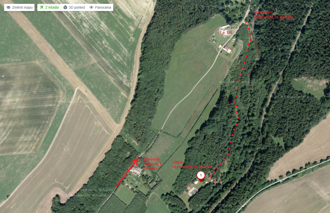 Základna se nachází na louce mezi lesy u řeky, v blízkosti klidné vesničky s celkovou vybaveností.