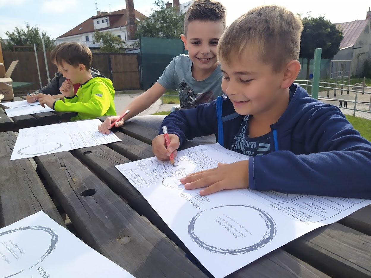 Jelikož nemáme ve městě klubovnu, jsme domluveni s panem ředitelem ZŠ, kde učím, že schůzky probíhají u nás ve škole. Ale od prvního týdne v září prostě musí být každý program situovaný ven (v našem případě na školní dvůr, hřiště, do města, do parku, na blízké louky nebo do venkovní učebny na školní zahradě). Děti ví, že na schůzky si především musí vzít obuv, která se může i pořádně zašpinit. Každá schůzka za normálních časů začínala v “kmenové” třídě, kde si děti zaznačily svoji přítomnost na schůzce, řekli jsme si, co nás čeká, vzali společně materiál, který byl na ven potřeba, a šli jsme. Teď se scházíme na smluveném místě venku a vedoucí schůzky si musí všechno dopředu nachystat a donést ven sám.