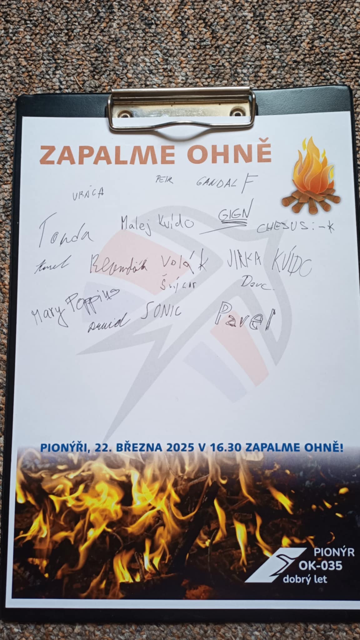 Pionýrská skupina Hrádek 22.3.2025 byla součástí 145 ohňů, které pionýři zapálili hromadně v 16.30 hodin po celé republice na počest 35.ročí znovu obnoveného Pionýra. Bylo tak dosaženo výsledku , který poslouží k zápisu do knihy rekordů. Gratulujeme !!!
