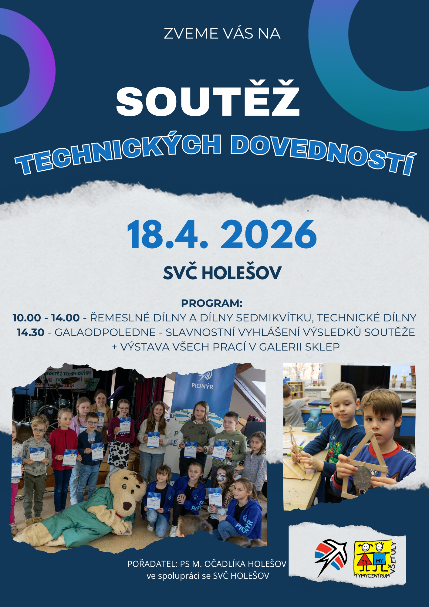 Pionýrská skupina M. Očadlíka z Holešova pořádá v sobotu 18. 4. 2026 soutěž technických dovedností a krajské kolo Sedmikvítku ve výtvarné činnosti. Všichni jste srdečně zváni!